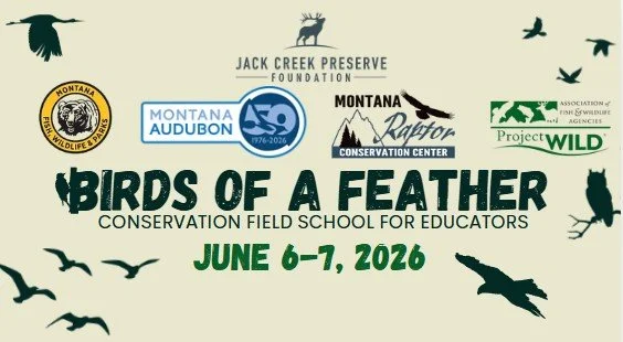 Putting the birds in “Birds of a Feather”, MT Raptor Conservation Center will be bringing some of their feathered ambassadors to the Preserve so that educators can learn about raptor conservation. Additionally, educators will learn about how they can bring MT Raptor Conservation Center into their own classrooms!